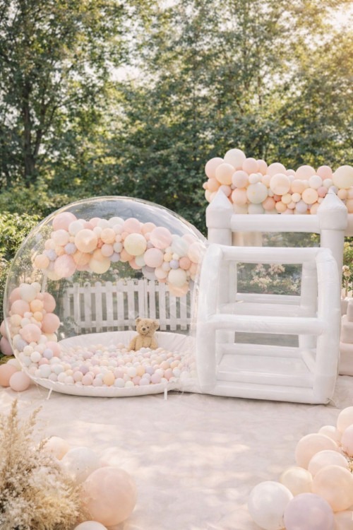 Step inside a whimsical, inflatable Bubble House—a cozy, enclosed play space with transparent or mesh walls that fills with soft, bouncy air. Designed for safe, supervised fun, it offers a sheltered area where kids can jump, tumble gently, and play while staying contained and visible to adults. Its clear panels let in light and maintain sightlines, while the soft, inflated floor and walls cushion every bounce. Ideal for backyard parties, small events, or indoor setups where you want energetic but controlled play, the Bubble House creates a playful, breathable environment that keeps kids entertained without sacrificing safety or visibility. Easy to set up and suitable for a range of ages under supervision.