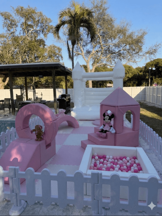 Our beautiful Pink Soft Play Set creates the perfect play area for toddlers at birthdays, baby showers, and special celebrations.